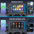 - 【Wireless CarPlay and Wireless Android Auto】 With simple setup, you can access your smartphone on the 5-inch touchscreen, and your phone's apps can also be displayed on this screen simultaneously. For example, map navigation, making and receiving calls, playing music, etc. In dual Bluetooth mode, you can set the phone's audio output to the screen or headphones.