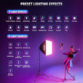 • 【Package Contents】 2 x 24W RGB LED Bulb, 2 x Softbox, 2 x Light Stand, 1 x Carrying Bag