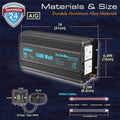 • 【1500W Pure Sine Wave Power Inverter】Provides 1500w 12v to 240v continuous power,coming with 2 AC outlets and 2.4A USB ports.