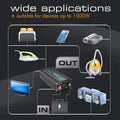 Pure Sine Wave Power Inverter 1500W DC 12V to AC 230V 240V with 4.5m Battery Status monitor Remote Controller 2.4A USB Port