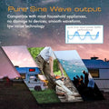• 【Advance Protections】Including Short circuit protection, Input over-voltage/under-voltage protection, Outputshort-circuit, over-load, over-current, over-temperature protection. Durable Aluminum Housing can protect power inverter from drops and bumps. The built-in cooling fan ensures you a ultra silent using experience, also keeps the inverter running safely and effectively at a low temperature, avoiding overheat.
