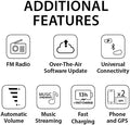 - Built-in FM Radio with RDS for automatic selection of the strongest signal – whether you are in town, or in the middle of nowhere.