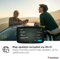 - TomTom world map updates, Explore the world with global map coverage and free monthly map updates to avoid unpleasant surprises, navigating with ease by driving routes that account for road closures and other traffic inconveniences.