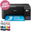 - Keep on saving: This economical printer saves you up to 95% on printing costs* and comes with up to 3 years' worth of ink included in the box*. One set of ink bottles delivers up to 4,500 pages in black and white and 7,500 in colour*.