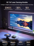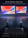 • 【إعداد فوري مع التركيز التلقائي وتصحيح الانحراف】تضمن الوحدة 3 في 1، المزودة بقياس المسافة بالليزر، ومستشعرات TOF، وكاميرا CMOS عالية الدقة، صورًا واضحة وخالية من التشوهات في ثوانٍ. يمكن تحريك جهاز العرض قصير المدى بحرية، ويعرض شاشة مقاس 100 بوصة من مسافة 2.8 متر فقط. إنه مثالي للمساحات الصغيرة، وغرف النوم، أو أنظمة المسرح المنزلي الديناميكية.