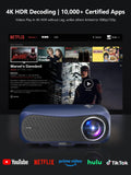 جهاز عرض ذكي بدقة 4K مع اعتماد Netflix، صوت Dolby، تركيز تلقائي ToF، جهاز عرض نهاري 1900 ANSI 4K HDR، مع Google TV، NFC، WiFi6، Bluetooth 5.4، HDMI ARC، للسينما المنزلية/الألعاب التلفزيونية الخارجية