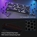 - Sound-dampening foam with switch-dampening pads: Unique, integrated dampening foam with added switch-dampening pad structure absorbs pinging noises and echoes for improved keystroke acoustics
