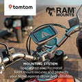 • Clever display: The 4.3 inch display of the TomTom Rider motorcycle sat nav lights up brightly and is easy to read even in sunlight. In addition, it seamlessly switches between portrait and landscape format.Mounting system: with the special RAM mount, you can attach and protect your TomTom motorcycle navigation device optimally. The included bracket is easy to install