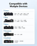 - Recommend to be Compatible with Canon EOS R10, EOS R8, EOS R7, EOS R6, EOS R6 II, EOS R5 C, EOS R5, G7X Mark III, G7X Mark II, EOS M6 Mark II; Nikon Z 7II, Z 6II, Z 5, D780, D850; Sony Alpha 7C II, Alpha 7CR, Alpha 7C, Alpha 9 II, Alpha 9, Alpha 7R IV, Alpha 7R V; Fujifilm X-S20, X-T5, X-H2S, GFX50S, GFX50R; Panasonic S5 IIX, S5, G9, G95; Leica Q3