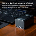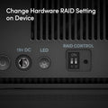 • Ships in RAID 1 for Peace of Mind with transfers rates up to 260MB/s read, or use the hardware RAID selector for up to 510MB/s read in RAID 0