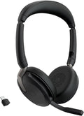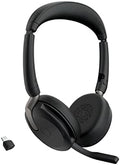 - In the box: 1x Jabra Evolve2 65 Flex Stereo Headset with Bluetooth and Link 380 USB-C Bluetooth Adapter, and USB-C Cable, Headset weight: 136g / 4.8oz, Colour: Black