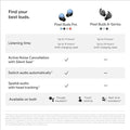 • The wireless earbuds are designed for a comfortable, secure fit, with sensors to reduce the plugged-ear feeling