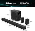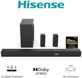 Hisense AX5100Q, 5.1 CH Soundbar,Hi-Concerto,Dolby Atmos, DTS:X, Semi wireless rear surround speakers,6.5" wireless subwoofer, EzPlay