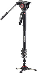 • Manfrotto Video Monopod XPRO+, Camera and Video Support Rod with Head, 4-Section in Aluminium with Fluid Base, Photography Accessories for Content Creation, Videography, Vlogging