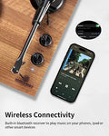 - Other Features: quieter belt power, built-in Bluetooth 4.2 input to play your music from other mobile devices (digital music), built-in phono preamp and RCA line output, stable iron plate to reduce vibration, adjustable counterweight force to prevent jumping and distortion, 2 speeds (33 1/3 and 45 RPM), easy to install and use.