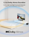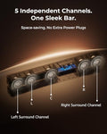 • Simplified 5.1ch Dolby Atmos Setup: Enjoy immersive 4D sound with real Dolby Atmos and 5.1-channel audio. Five built-in speakers, including two side-firing drivers, create wide surround without rear speakers. Precision DSP ensures <0.5 ms latency for smooth, theater-like sound. Setup takes less than 1 minute.Note: Not compatible with DTS.