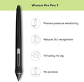 • Pen included: Thanks to the included battery-free Wacom Pro Pen 2 with 8,192 pen pressure levels & 60° tilt recognition, your Wacom drawing tablet ensures maximum precision & natural feeling. 3 additional standard Wacom pen nibs stored in pen holder